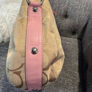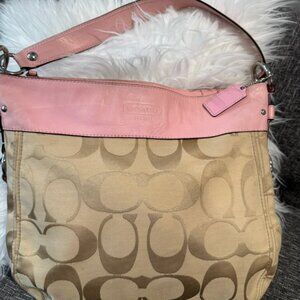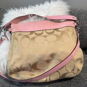 Coach Signature F14709 Shoulder Handbag Hobo Purse Pink w/ Crossbody Strap