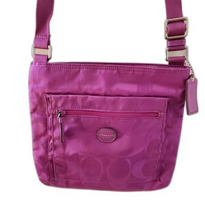 Coach Signature Fabric Purple nylon Adjustable Crossbody File Bag