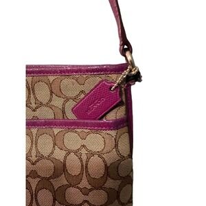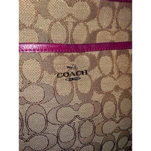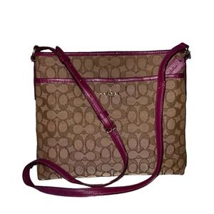 Coach Signature File Crossbody Bag Coated Canvas Khaki Purple Leather Trim