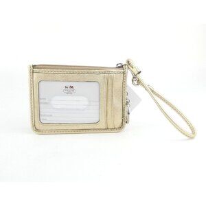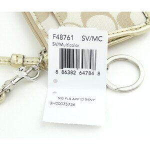 Coach Signature Flower Applique Light Khaki Gold ID Skinny Wristlet NWT F48761.