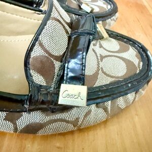 - Signature Coach canvas with brown patent leather trim driving loafer