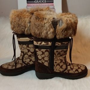 Coach Signature Fur Trim Lorna Boots Sz 8 Women
