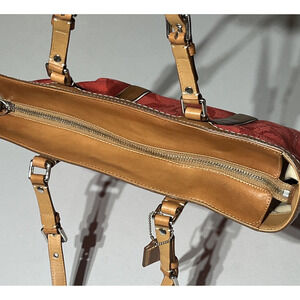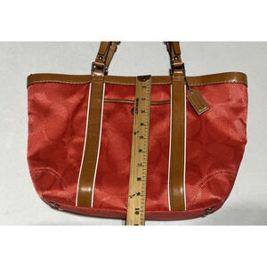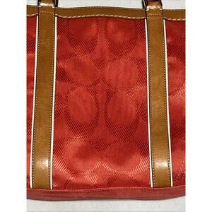 Coach Signature Gallery Tote Bag Coral & Brown Leather Trim Zip Travel F13560