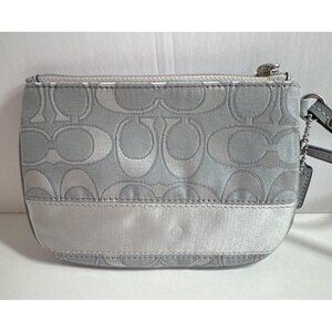 Coach Signature Gray Wristlet Pouch with mini hang tag 7”x4.5”
