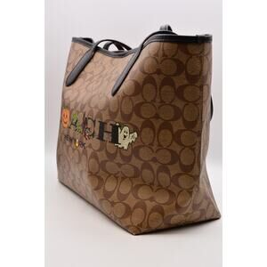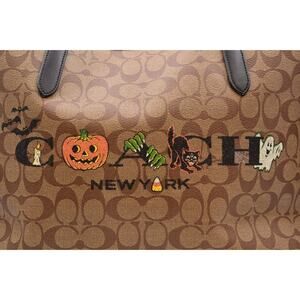 Coach Signature Halloween City Tote In Signature Canvas Pumpkin Ghost 2022 NWT