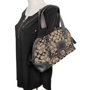 Coach Signature Hampton Miranda Domed Black Tan Canvas Leather Satchel F13977