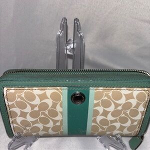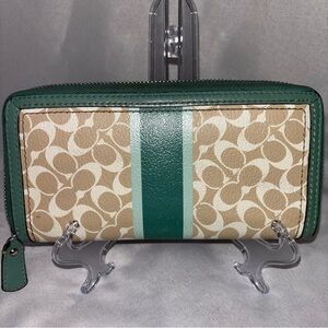 Coach Signature Heritage Stripe Chelsea Continental Zip Around Wallet