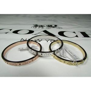 Coach Signature Hinged Gold Bangle Womens Causal Rhinestone Bracelet New