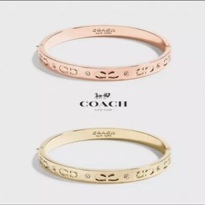 Coach Signature Hinged Gold Bangle Womens Causal Rhinestone Bracelet New