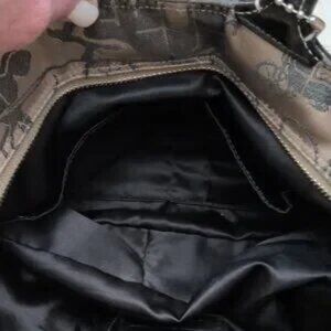 Timeless elegance meets everyday functionality in this genuine Coach handbag. Crafted from durable canvas with the iconic horse-and-carriage print and accented by black leather trim, this piece features: