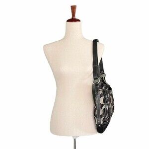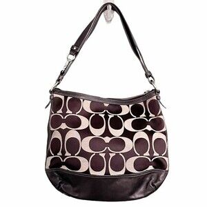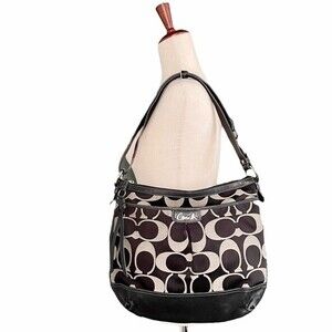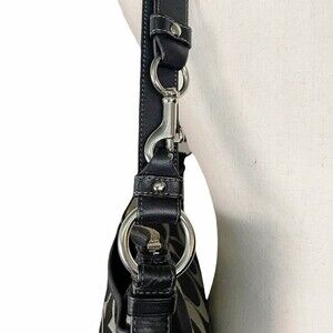 Coach Signature Jacquard & Black Leather Hobo Shoulder Bag Convertible Crossbody