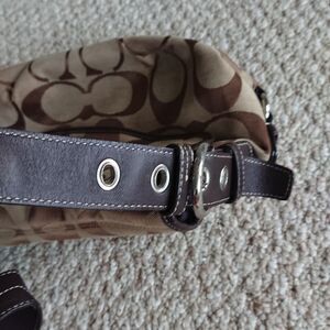 Beautiful everyday Coach crossbody or shoulder bag with the iconic monogram jacquard canvas in brown.