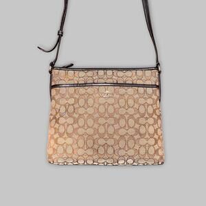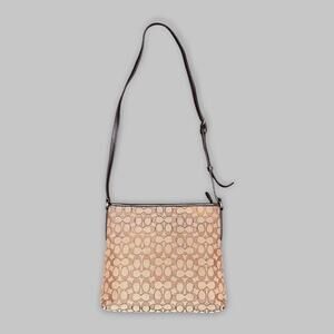 Note: A timeless Coach classic, this signature jacquard crossbody bag combines practical function with signature style. Neutral brown and tan tones make it versatile for everyday wear. Please review all photos for condition details, as colors may vary slightly due to lighting.