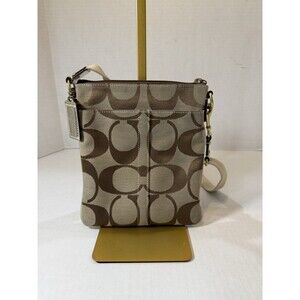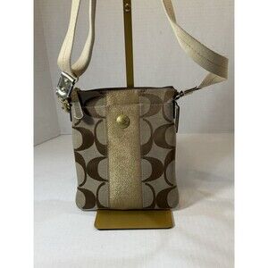 Coach Signature Jacquard North South Gold Lurex CROSSBODY SWINGPACK 42246 Mint like new.