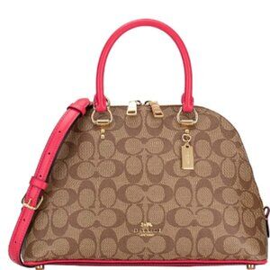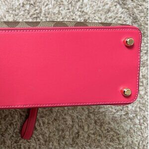 Coach Signature Katy Satchel in Khaki Electric Pink