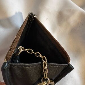 Stylish Coach keychain wallet with signature pattern. Features brown and tan colors.