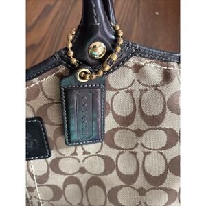 Coach Signature Khaki Brown Bleeker Tote 12369. **few pen stains insid/see pic**