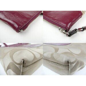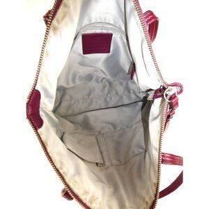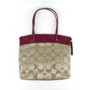 Coach Signature Khaki Burgundy Laura Tote Shoulder Bag F18335 in excellent condition.