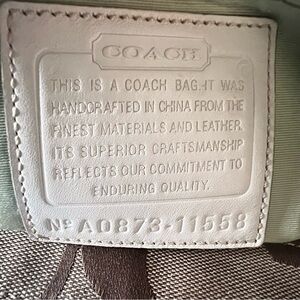 Elevate your style with the Coach Signature Tote Bag. Featuring a classic brown and white design, this bag is perfect for any occasion. The elegant pattern and durable construction make it a must-have accessory.
