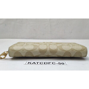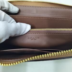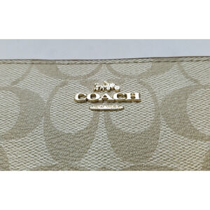 Coach Signature Khaki Saddle Leather Zip Around Credit Card Wallet - NWT $298