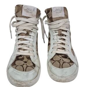 Coach Signature & Leather Ellis Khaki / White High Top Sneakers 8