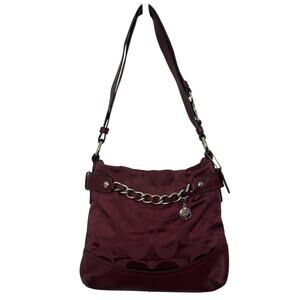 Signature Burgundy Canvas/Leather Crossbody Convertible Strap Purse