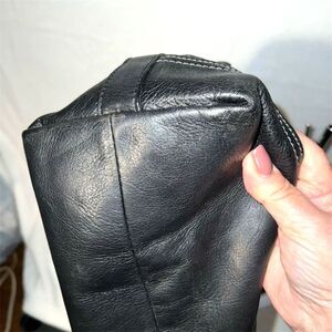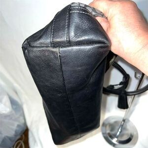 This Coach satchel/top handle bag, model 21154, features a classic and elegant design with a signature Coach pattern. Made from a combination of canvas and leather, it comes in a black and gray exterior color. The bag includes a convertible design with double handles and a detachable shoulder strap for versatile carrying options. It has a spacious interior with multiple pockets and a secure zip closure.Outside zipper pocket, Inside has 1 zipper pocket and 2 slip pockets. The bag is accented with leather details and a Coach logo plaque. Suitable for any occasion, this women's bag is pre-owned. Longer strap does show some signs of wear as well as botom corners. Clean interior.