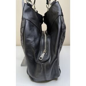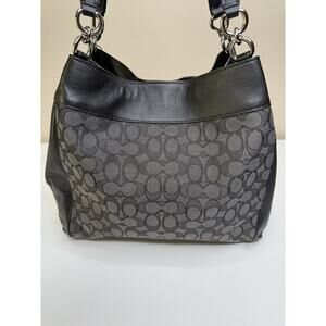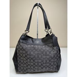 Coach Signature Lexy Shoulder Bag Large Black Leather Canvas F57612 Designer Bag