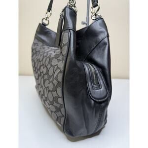 * Item details: Coach Signature Lexy Shoulder Bag Large Black Leather Canvas F57612 3 Compartment Zip & Magnet Close Designer Bag