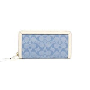 Coach Signature Light Washed Denim Chalk Accordion Zip Wallet NWT C5684.
