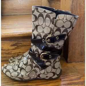Coach Signature Logo Boots Women’s Size 10 Brown Calf Riding