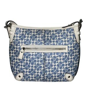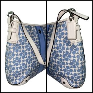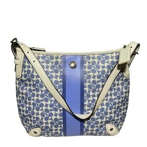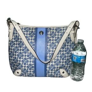 Coach Signature Logo Heritage Stripe Coated Canvas Tote Bag Blue White # F16191
