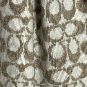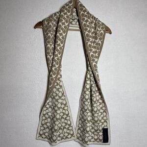 Coach Signature Logo Knit Scarf Beige Ivory Wool Blend Winter Wrap