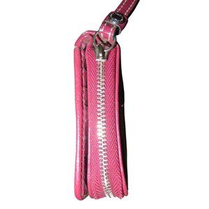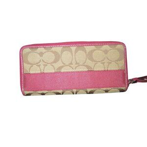 Coach Signature Logo Pink Stripe Zip Around Long Wallet with Snap Closure