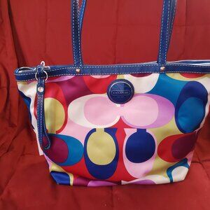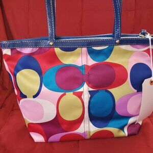 Coach Signature Logo Sateen Scarf Print Tote (F15183)
