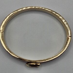 Coach Signature logo hinged style bracelet. Strawberry pink enamel on gold-tone hardware. Magnetic close. Signed inside. Some very light wear on a few areas from normal use. Overall great condition and smoke-free home.