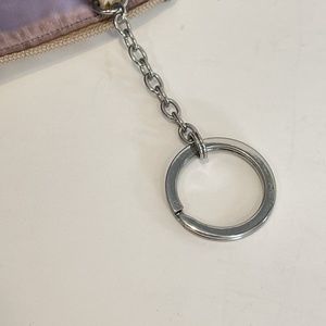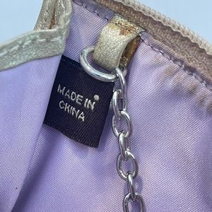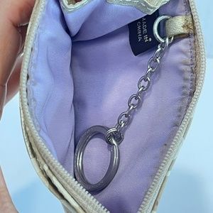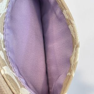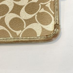 Coach Signature Logo Stripe Coin Purse Pouch Key Chain Change Gold Tan Wallet -