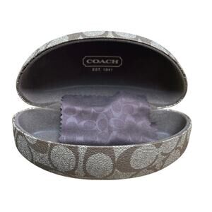 Coach Signature Logo Sunglass Eyeglass Glass Case Brown Tan Hard Shell Hinged