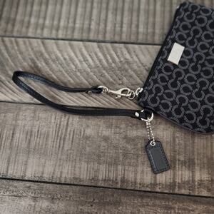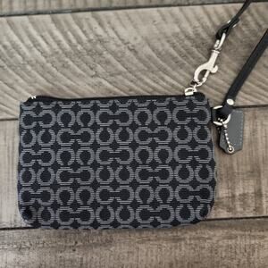 Coach Signature Maison Op Art Black Gray Clutch Wristlet with Strap Needlepoint