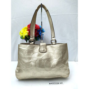 Coach Signature Metallic Gold Leather Buckle Satchel Shoulder Bag