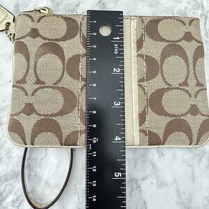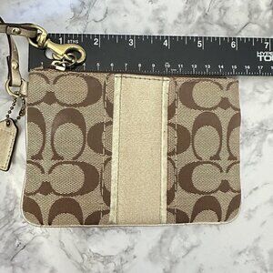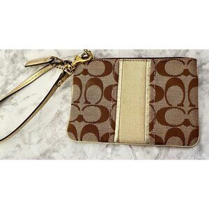 Coach Signature Mini Brown Gold Wristlet Wallet.