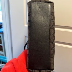 Coach Signature Mini Kelsey grey/black Tote with Leather Stripe Top, chain detail on straps