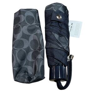 Coach Signature Mini Umbrella In Dark Denim