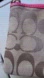 Stylish Coach wristlet with signature pattern. Beige canvas with pink trim. Perfect for essentials.