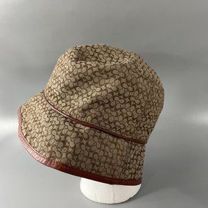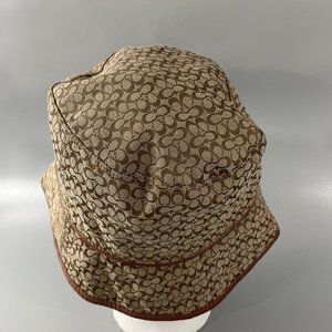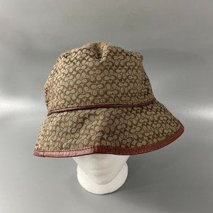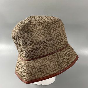 Coach Signature Monogram Brown Bucket Hat, M/L