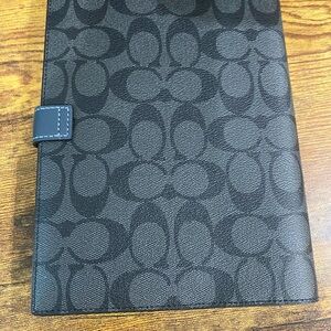 Stylish black and gray patterned notebook cover. Features a secure button closure.