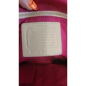 Coach Signature Nylon Tote Bag C1376-24362 Purple Beige Leather Trim Shoulder...