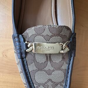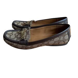 Coach Signature Olive Loafers Womens Sz 10 Brown Khaki Logo Slip-on Shoes AO1918