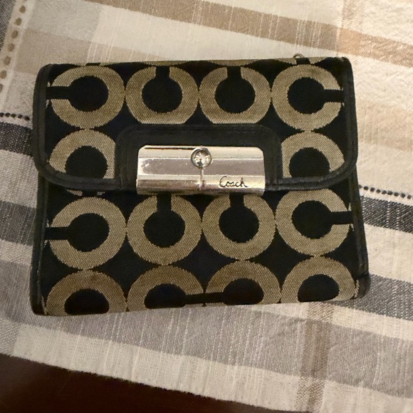 Chic Coach wallet with bold black and grey design. Good condition but could use a good cleaning on the outside.