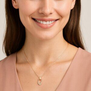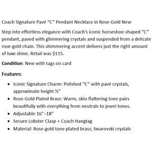 Step into effortless elegance with Coach’s iconic horseshoe-shaped “C” pendant, paved with glimmering crystals and suspended from a delicate rose-gold chain. This shimmering accent delivers just the right amount of luxe shine. Retail was $115.